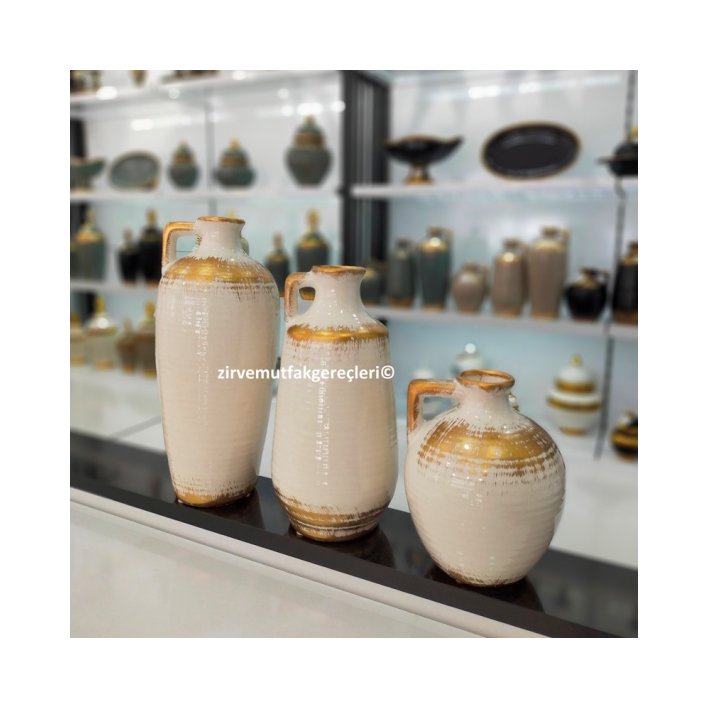 3'lü Antik Vazo Set - Beyaz - Zirve Mutfak Gereçleri San.Tic.Ltd.Şti.