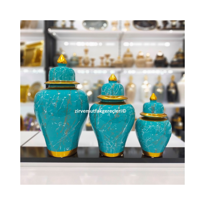 3'lü Büyük Şah Küp - Mint Yeşil Altın Mermer - Zirve Mutfak Gereçleri San.Tic.Ltd.Şti.