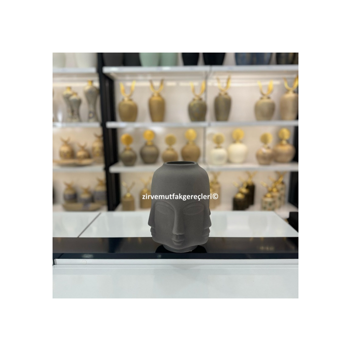 Dekoratif Ares Taş Doku Yüz Vazo-Gri - Zirve Mutfak Gereçleri San.Tic.Ltd.Şti.