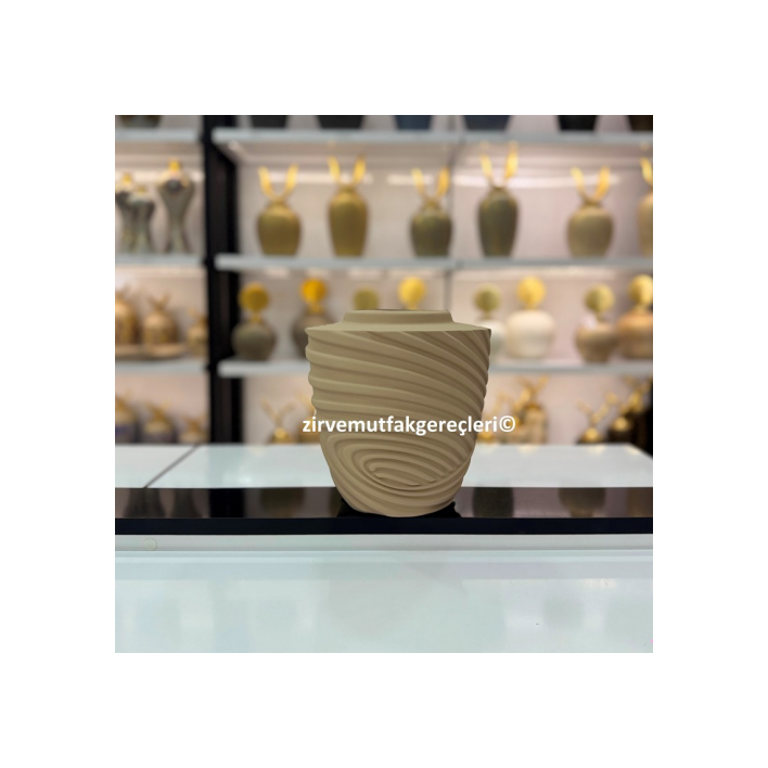 Dekoratif Anatolia Tombul Taş Doku Vazo-Bej - Zirve Mutfak Gereçleri San.Tic.Ltd.Şti.