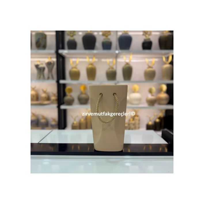 Dekoratif Büyük Boy Çanta Taş Doku Vazo-Bej - Zirve Mutfak Gereçleri San.Tic.Ltd.Şti.