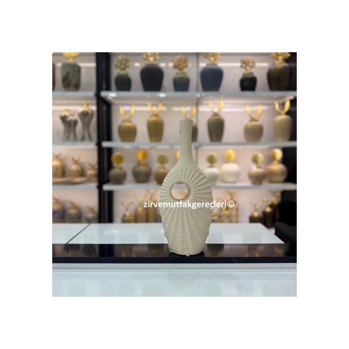 Dekoratif Büyük Boy Firuze Taş Doku Vazo-Beyaz - Zirve Mutfak Gereçleri San.Tic.Ltd.Şti.