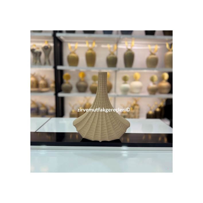 Dekoratif Firuze Üçgen Taş Doku Vazo-Bej - Zirve Mutfak Gereçleri San.Tic.Ltd.Şti.