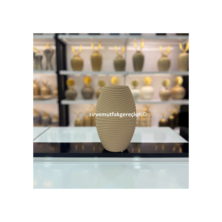 Dekoratif Küçük Boy Mercan Taş Doku Vazo-Bej - Zirve Mutfak Gereçleri San.Tic.Ltd.Şti.