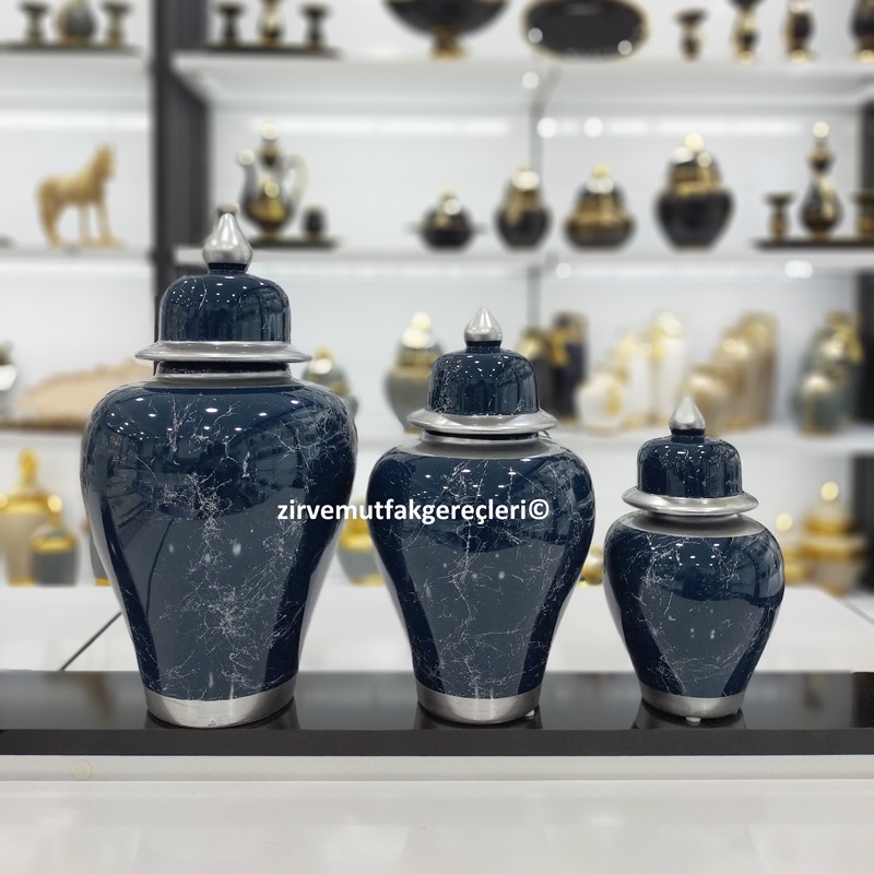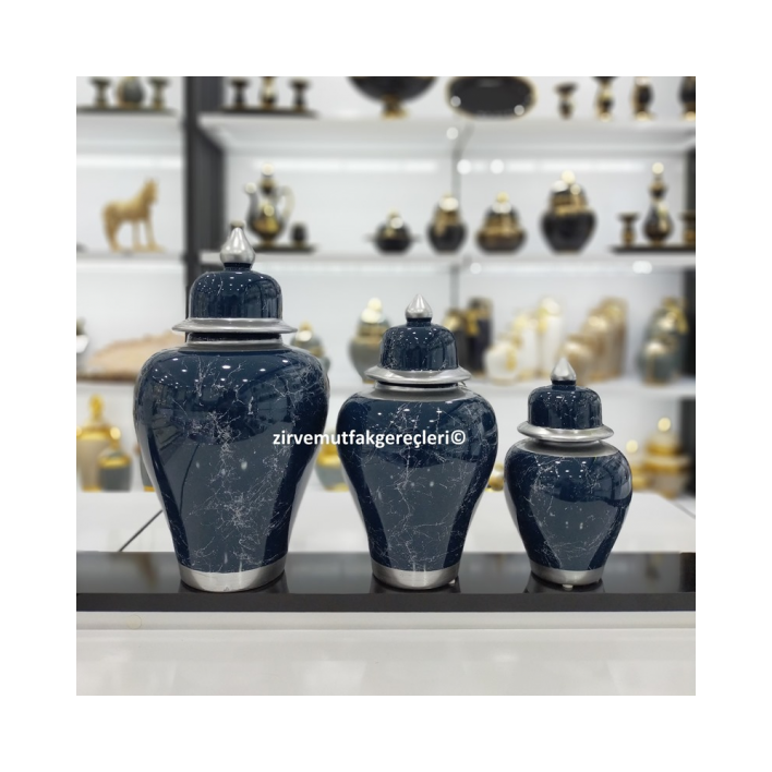 3 Pcs Decorative Jar Set with Silver Line - Night Blue Marble-N416 - Zirve Mutfak Gereçleri San.Tic.Ltd.Şti.